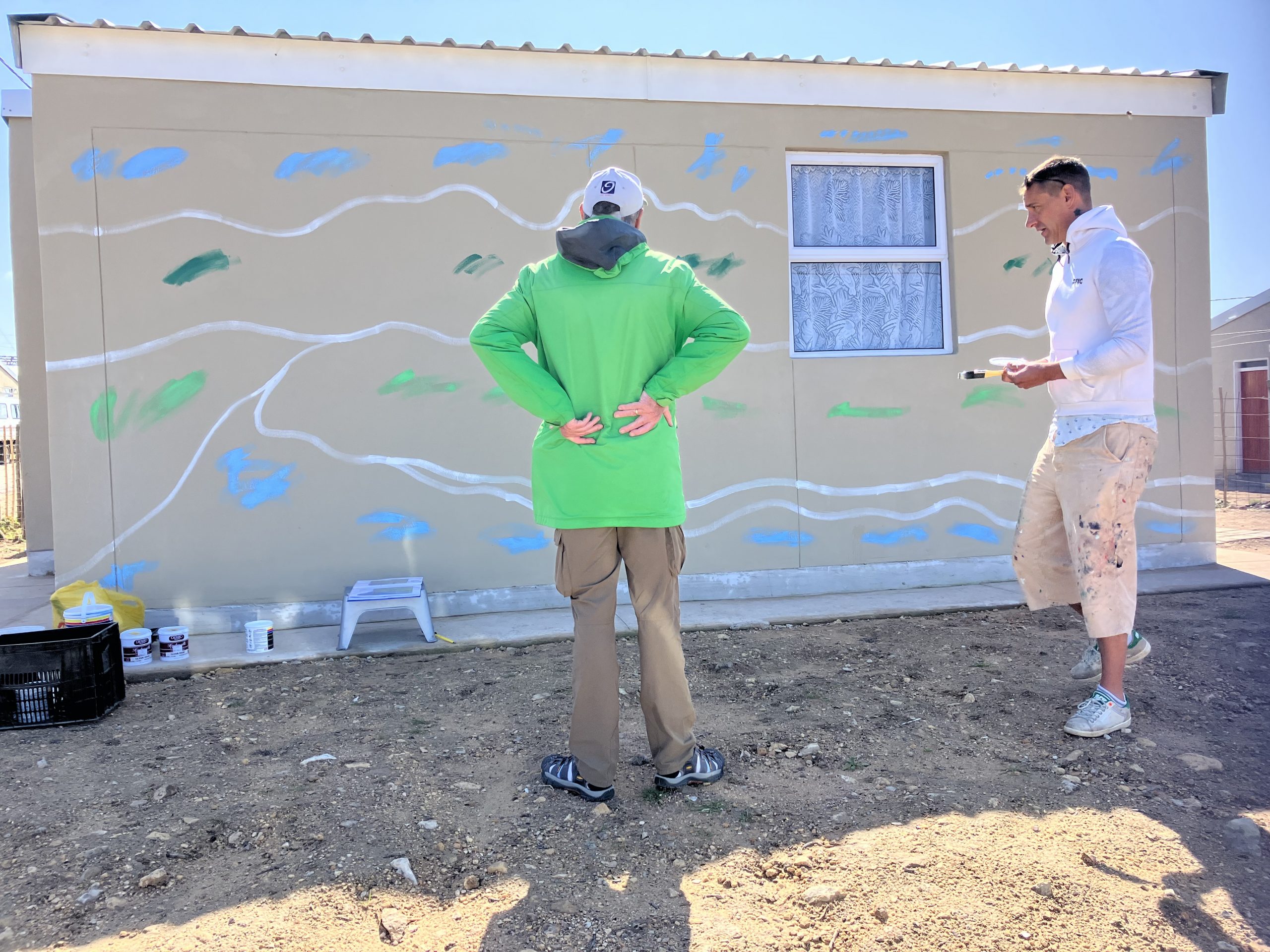 Caroline proudly stands beside her new mural, joined by its designer Bruce, and Hans, Chairperson of Dreamcatcher South Africa