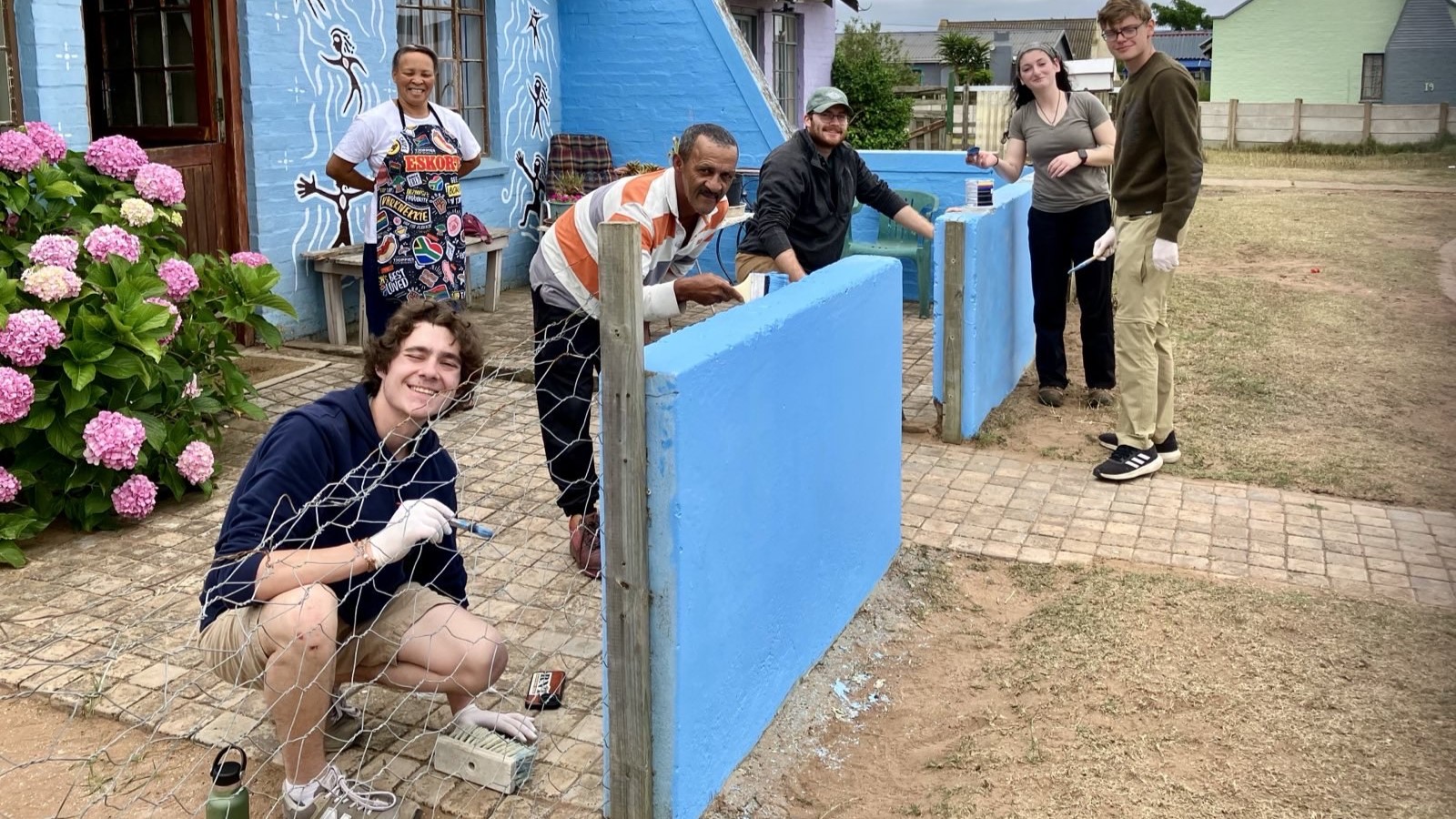 In 2025 students from Paul Smith’s College Natural Sciences volunteered with the community to paint up the front wall – as well as worked on repairs to existing murals.